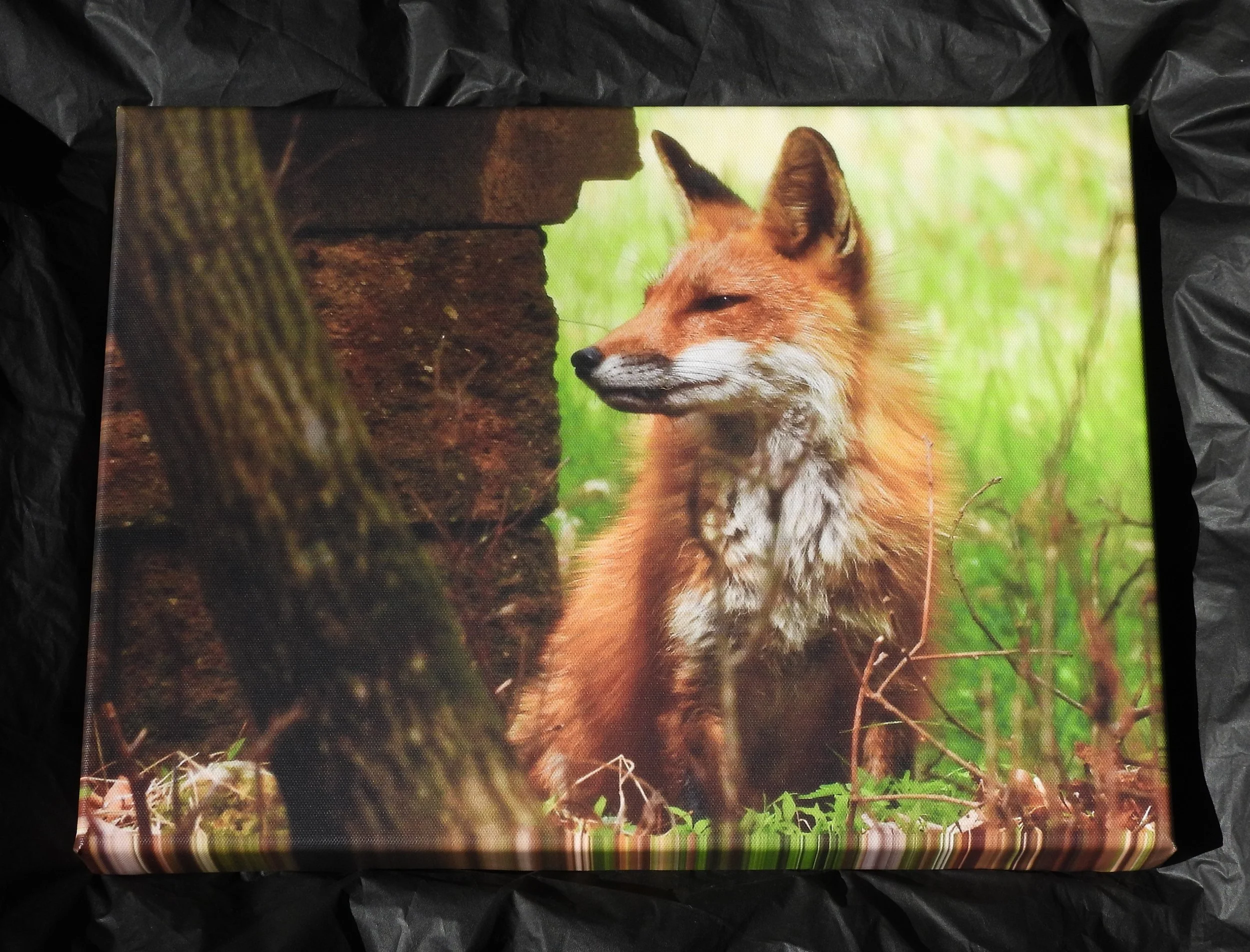 They do not look identical to the photographs since they are printed on canvas and therefore have texture.